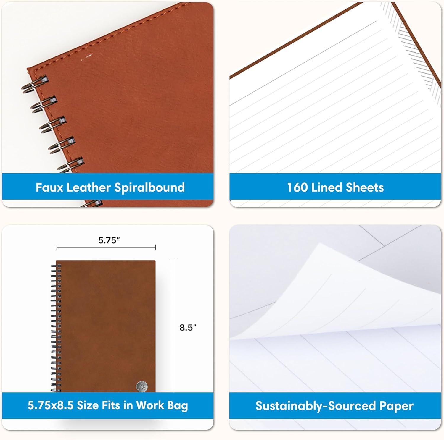 Blue Sky ASMBLD Non-Dated Notebook, 160 Pages, 5.75″ x 8.5″, Safety Wirebound, Tan Faux Leather Cover, Lined Pages, Durable, Perfect for Office, Home, School, Journals(Brown)
