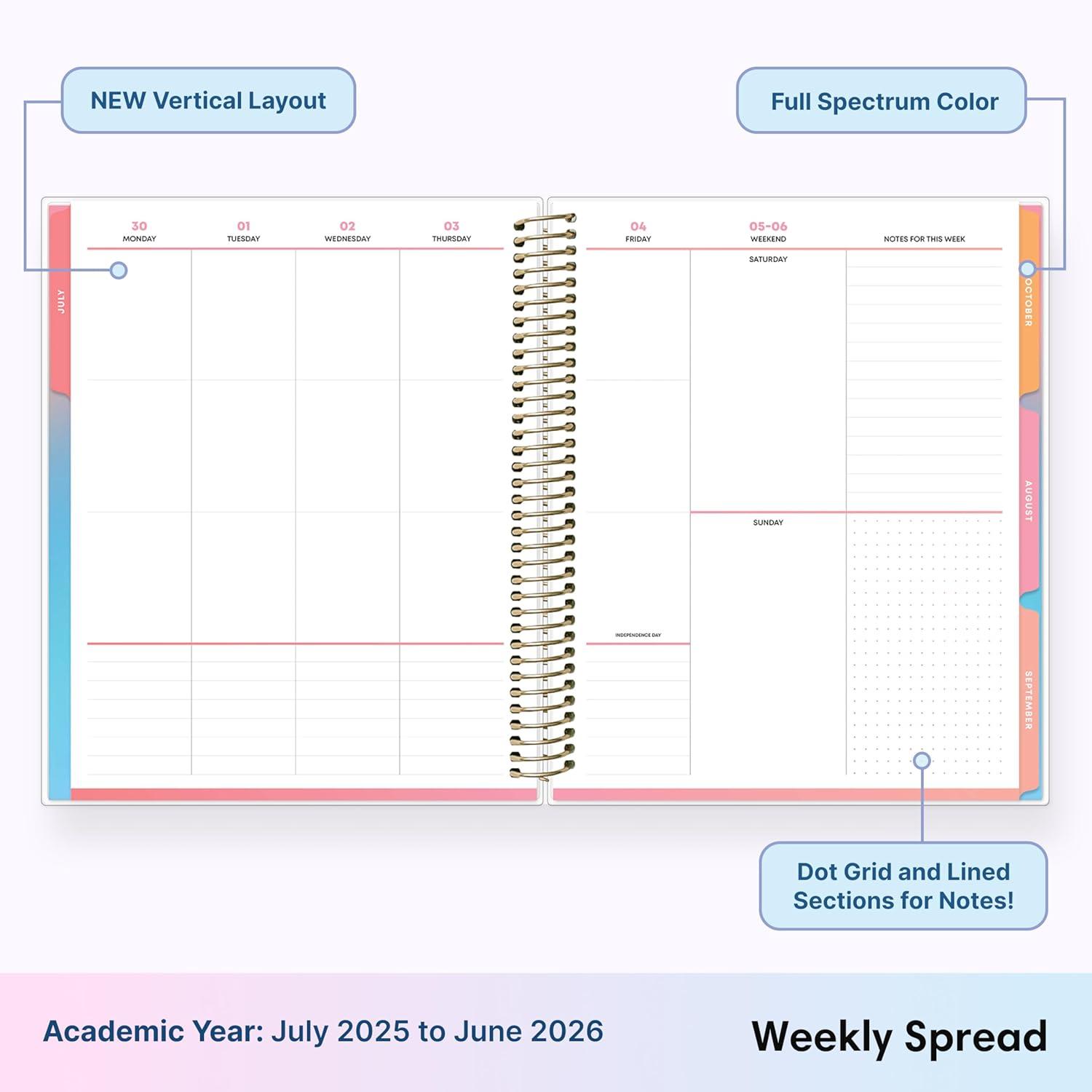 Blue Sky Livewell 2025-2026 Weekly and Monthly Academic Year Planner Calendar, July 2025 – June 2026, 7″ x 9″, Flexible Cover, Wirebound, Laminated Tabs, Storage Pocket, Includes Stickers, Rainbow(Rainbow- 2025/2026)