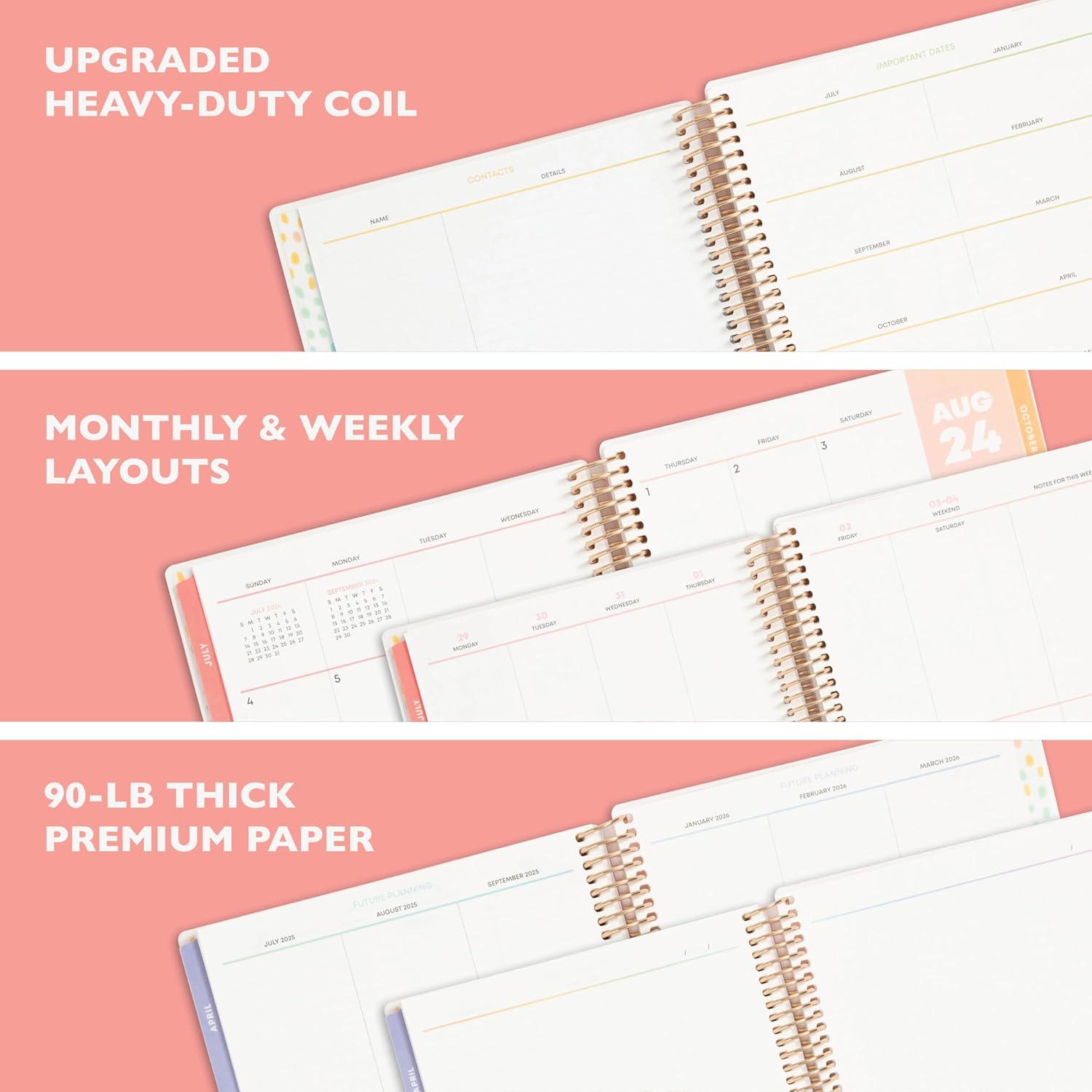 Blue Sky Livewell 2025-2026 Weekly and Monthly Academic Year Planner Calendar, July 2025 – June 2026, 7″ x 9″, Flexible Cover, Wirebound, Laminated Tabs, Storage Pocket, Includes Stickers, Rainbow(Charmie- 2024/2025)