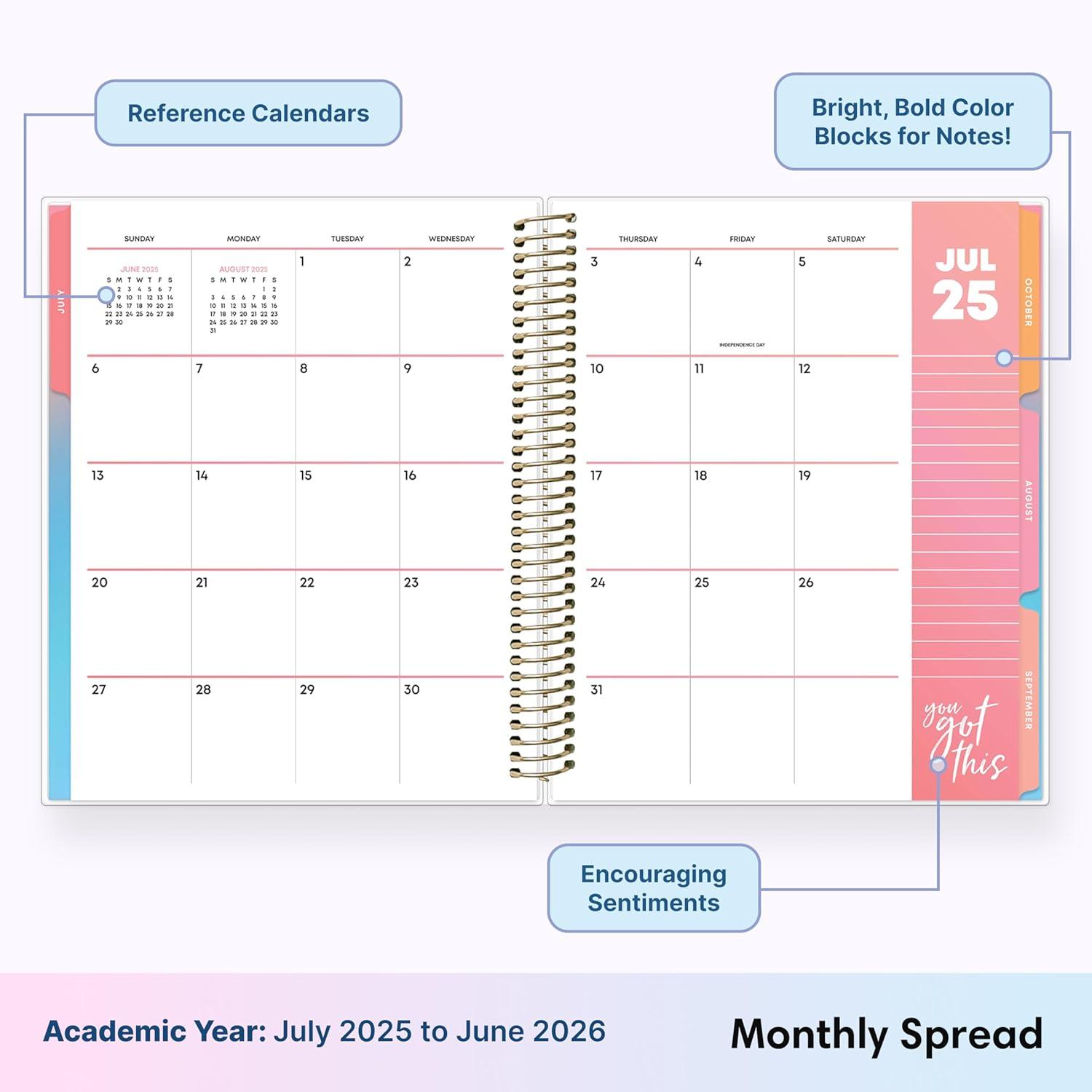 Blue Sky Livewell 2025-2026 Weekly and Monthly Academic Year Planner Calendar, July 2025 – June 2026, 7″ x 9″, Flexible Cover, Wirebound, Laminated Tabs, Storage Pocket, Includes Stickers, Rainbow(Beck- 2025/2026)