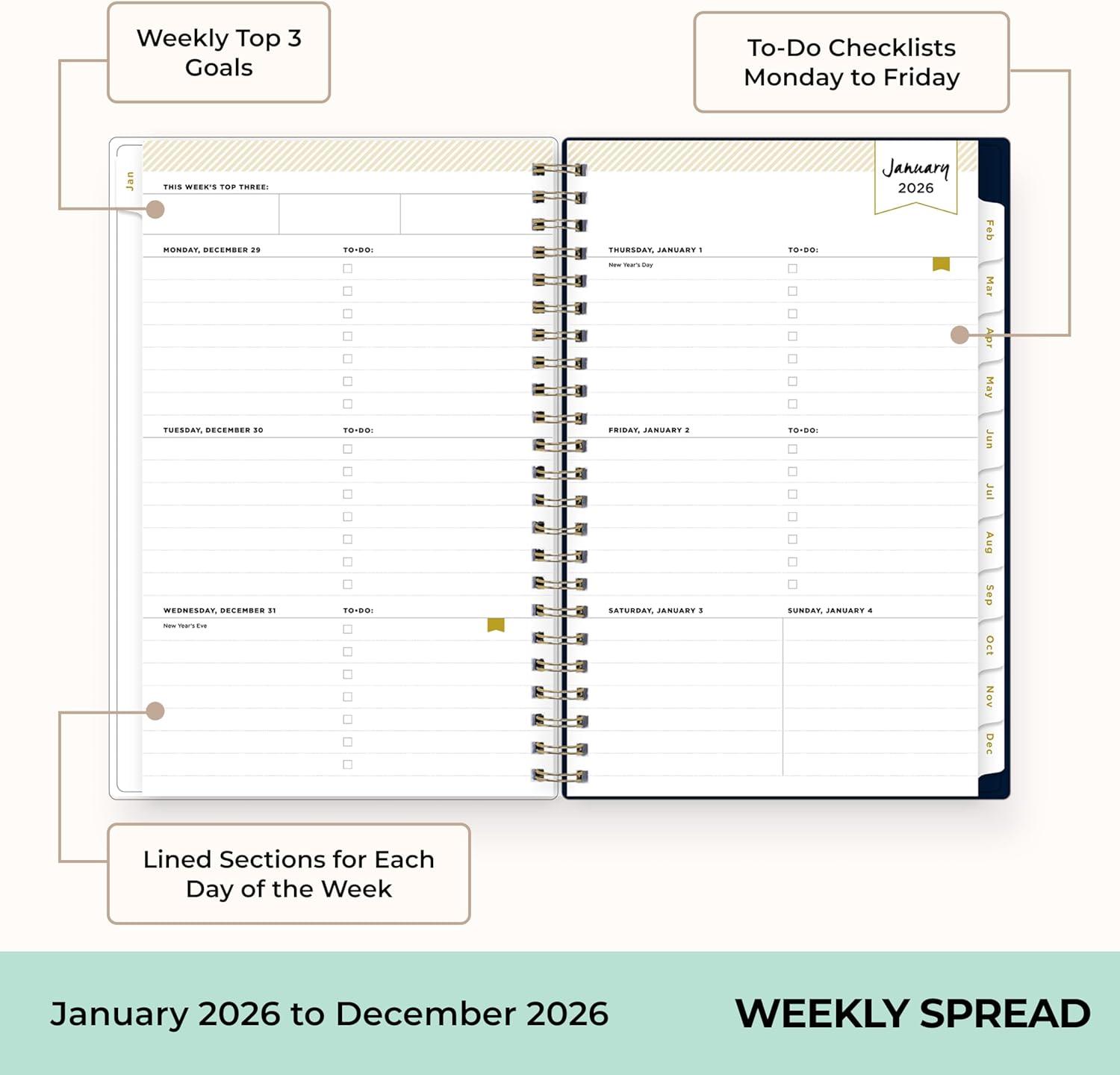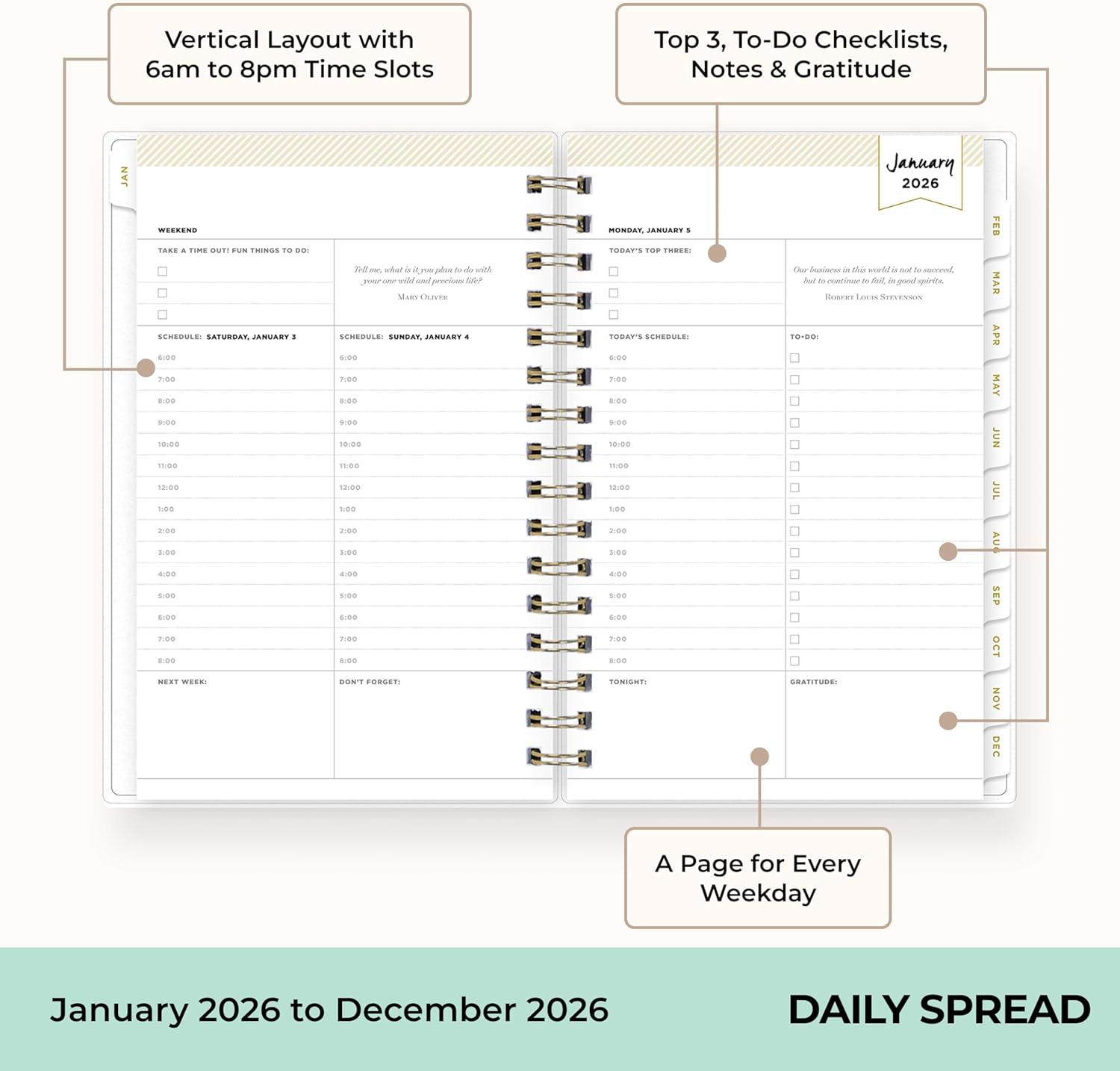 Blue Sky 2026 Weekly and Monthly Planner Calendar, January 2026 – December 2026, 8” x 10.875”, Flexible Cover, Laminated Tabs, Durable Twin Wire Binding, Dainian(Dainian- 2026)