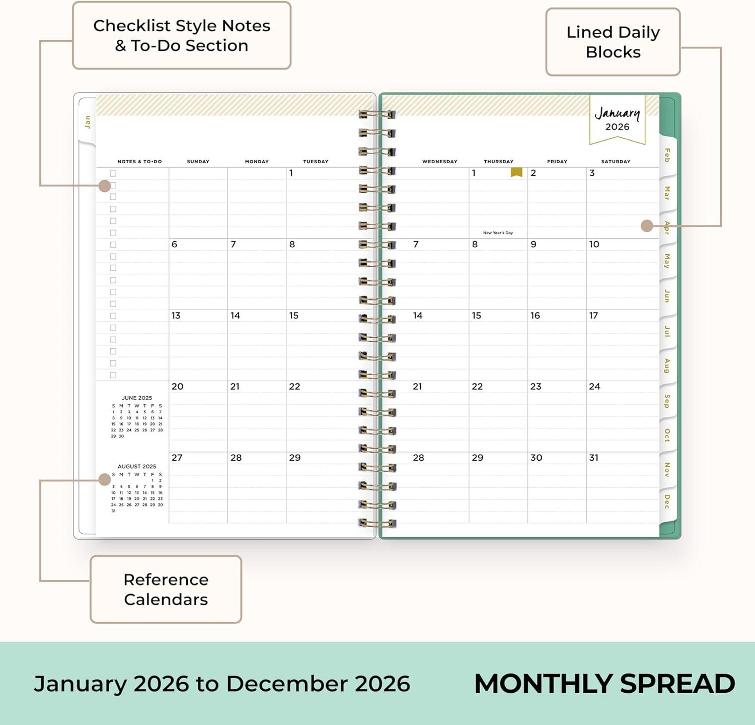 Blue Sky 2026 Weekly and Monthly Planner Calendar, January 2026 – December 2026, 8.5″ x 11″, Flexible Cover, Laminated Tabs, Durable Twin Wire Binding, Storage Pocket, Laurel(Laurel- 2025)