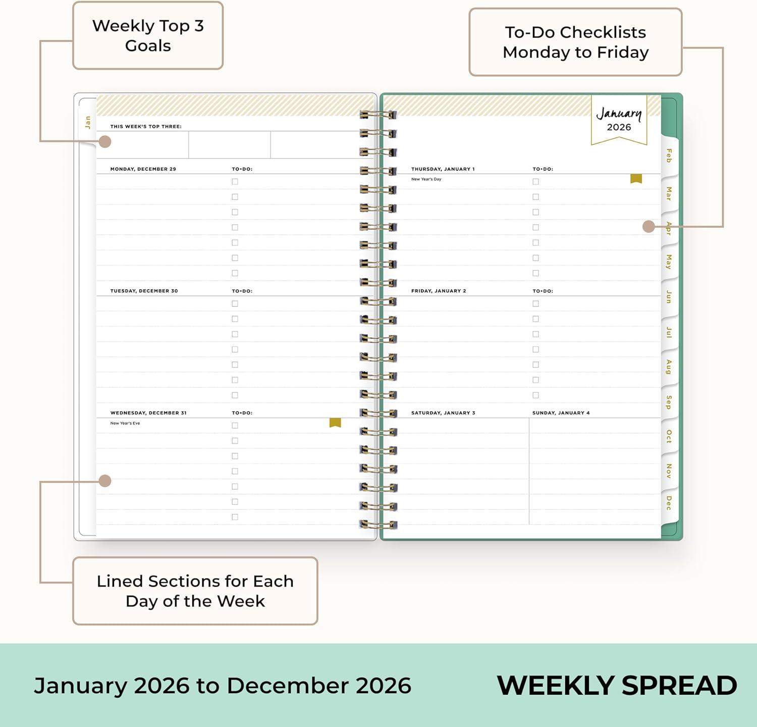 Blue Sky 2026 Weekly and Monthly Planner Calendar, January 2026 – December 2026, 8.5″ x 11″, Flexible Cover, Laminated Tabs, Durable Twin Wire Binding, Storage Pocket, Laurel(Laurel- 2026)