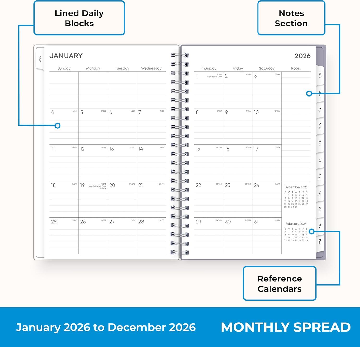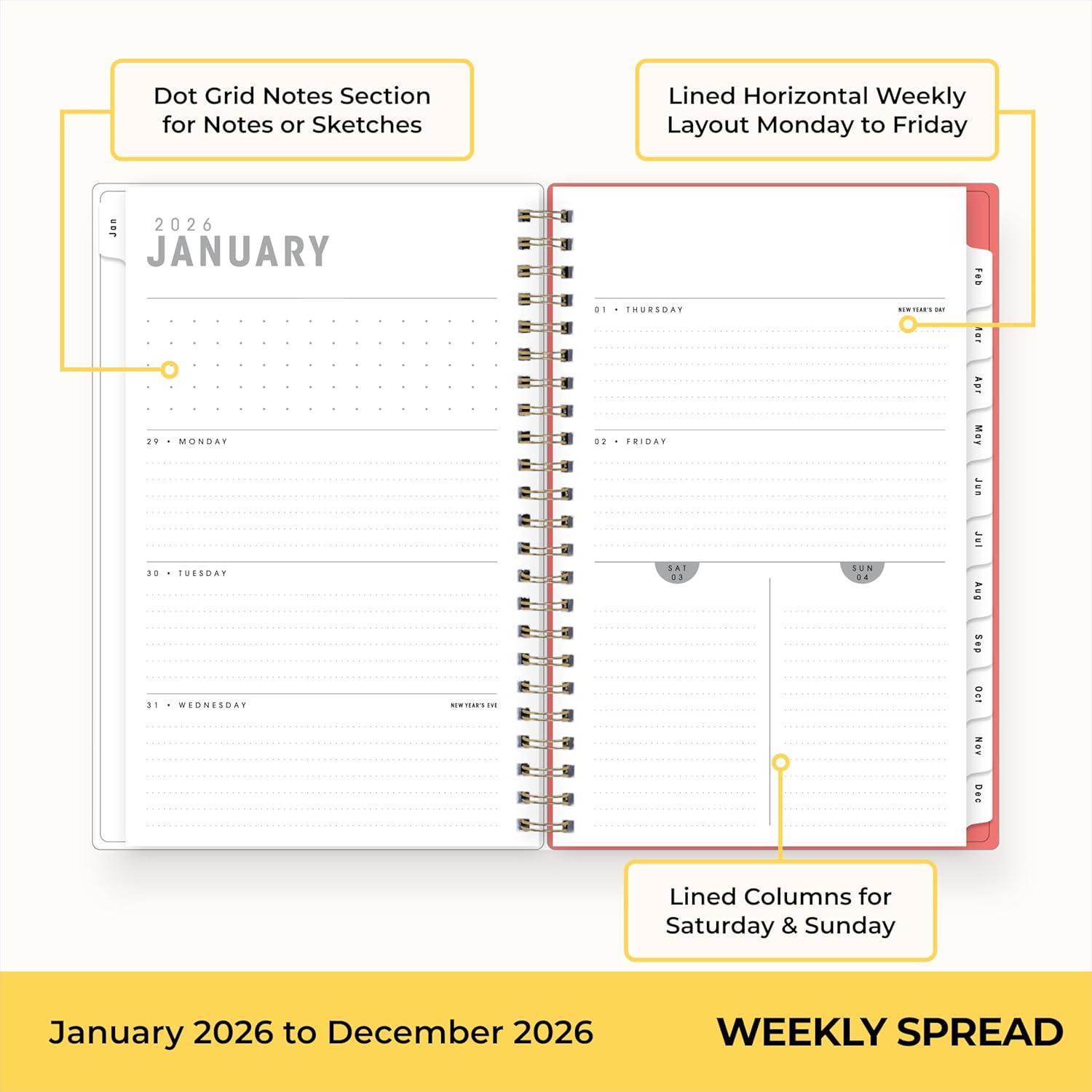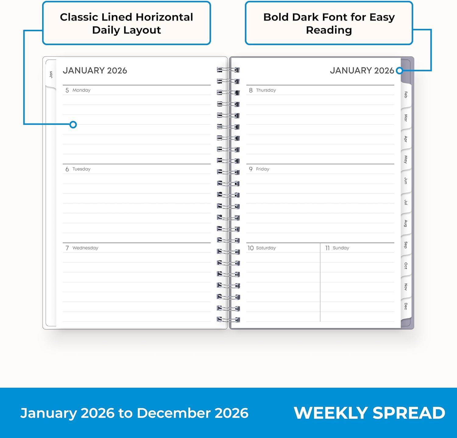 Blue Sky 2026 Weekly and Monthly Planner Calendar, January 2026 – December 2026, 5″ x 8″, Flexible Frosted Cover, Laminated Tabs, Durable Twin Wire Binding, Lindley(Lindley- 2026)