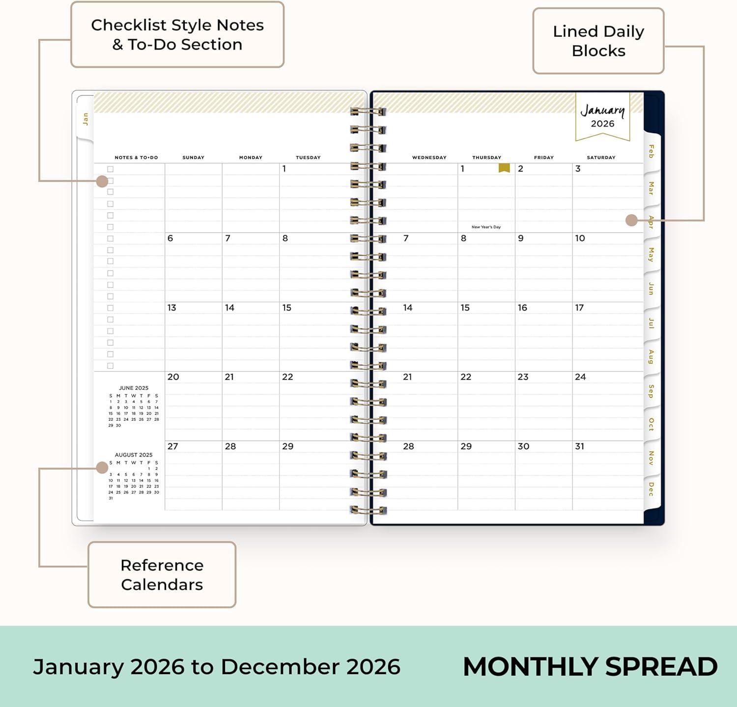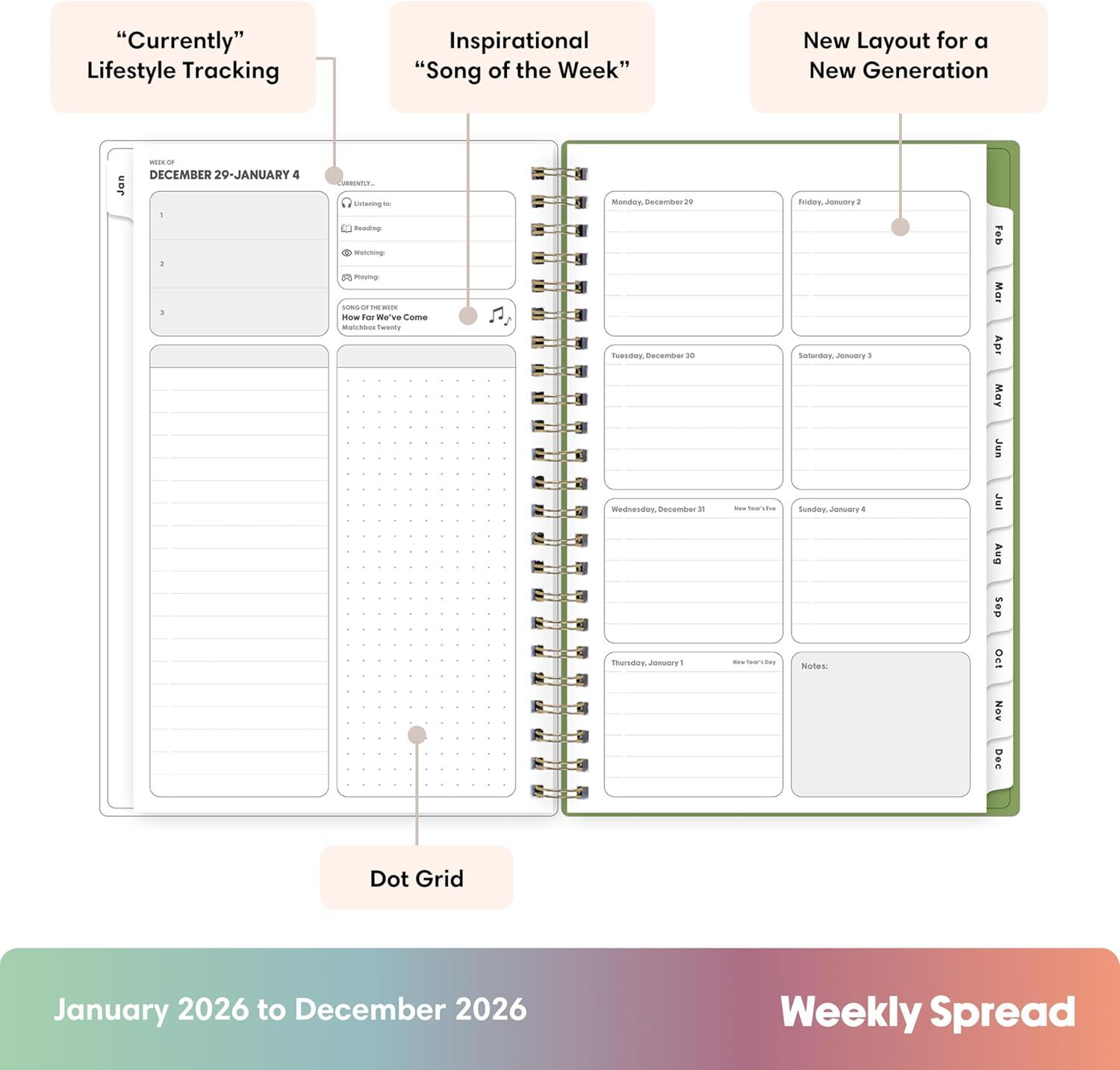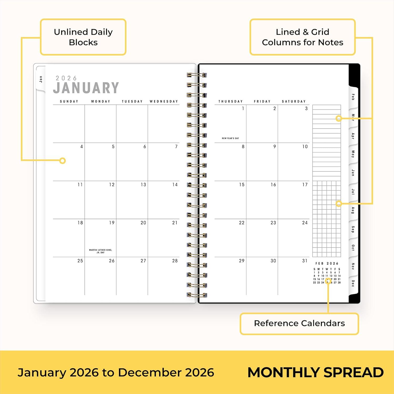 Blue Sky 2026 Weekly and Monthly Planner Calendar, January 2026 – December 2026, 5″ x 8″, Flexible Frosted Cover, Laminated Tabs, Durable Twin Wire Binding, Lindley(Lindley- 2026)
