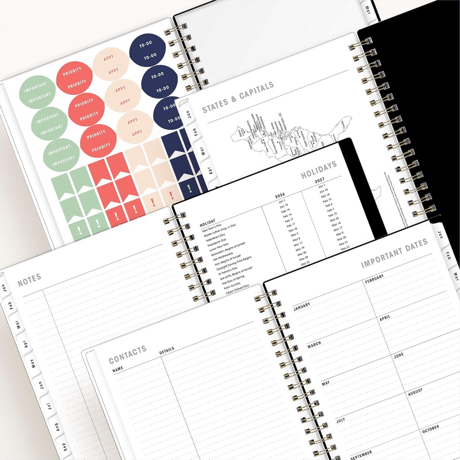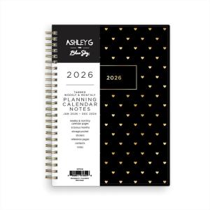 Blue Sky Ashley G 2026 Weekly and Monthly Planner Calendar, January 2026 – December 2026, 8.5″ x 11″, Flexible Cover, Durable Twin Wire Binding, Laminated Tabs, Pocket & Stickers, Shooting Stars Cream(Sweetheart Black- 2026)