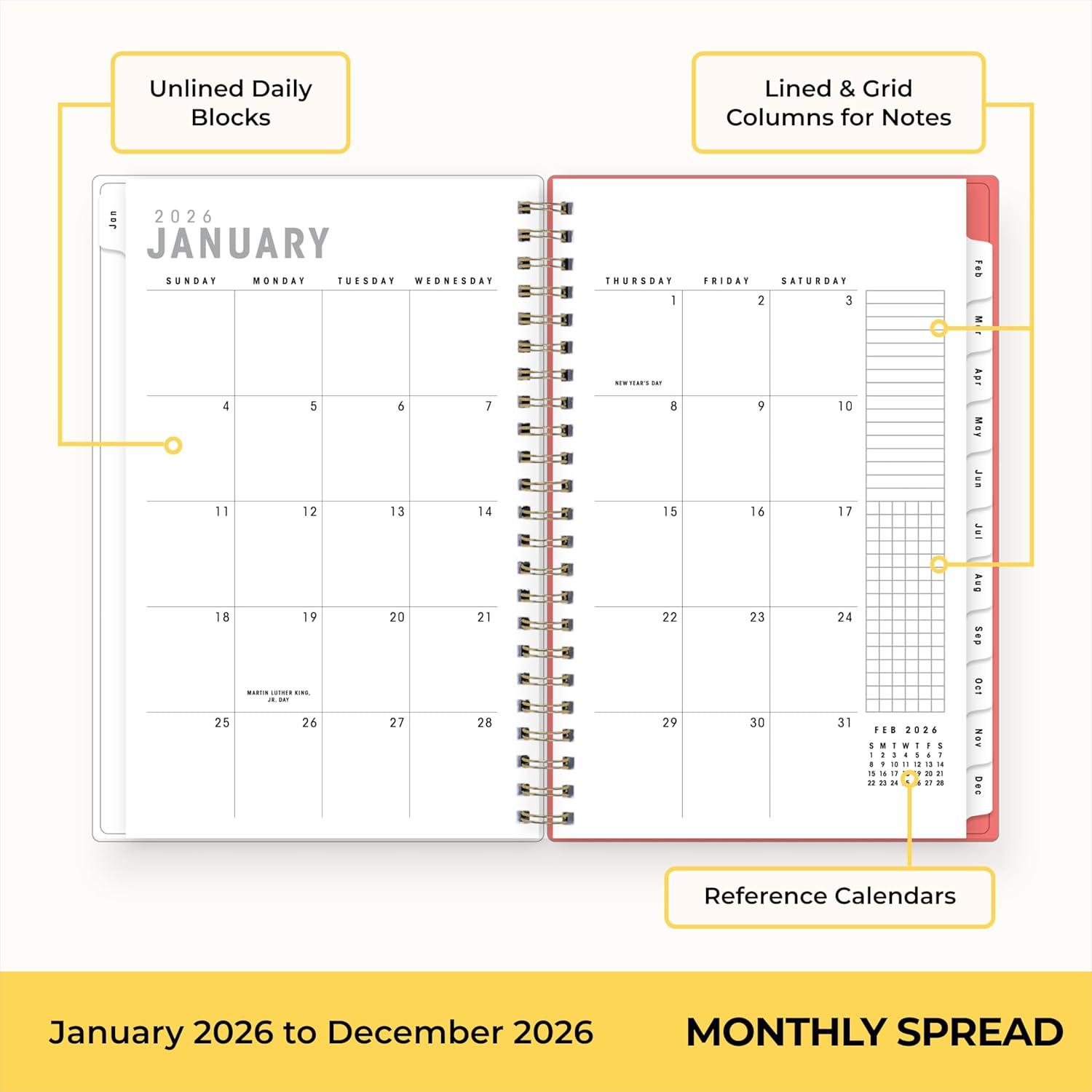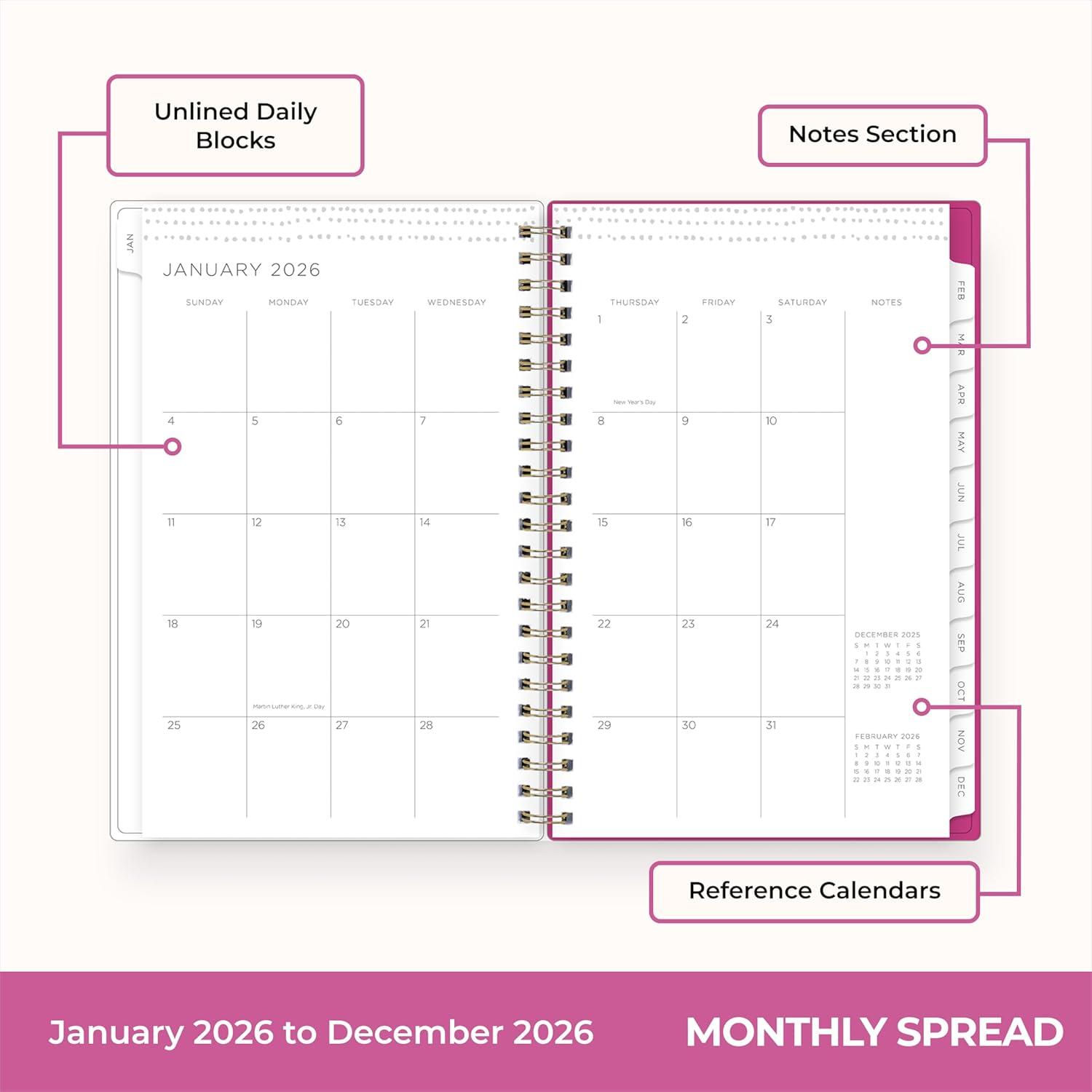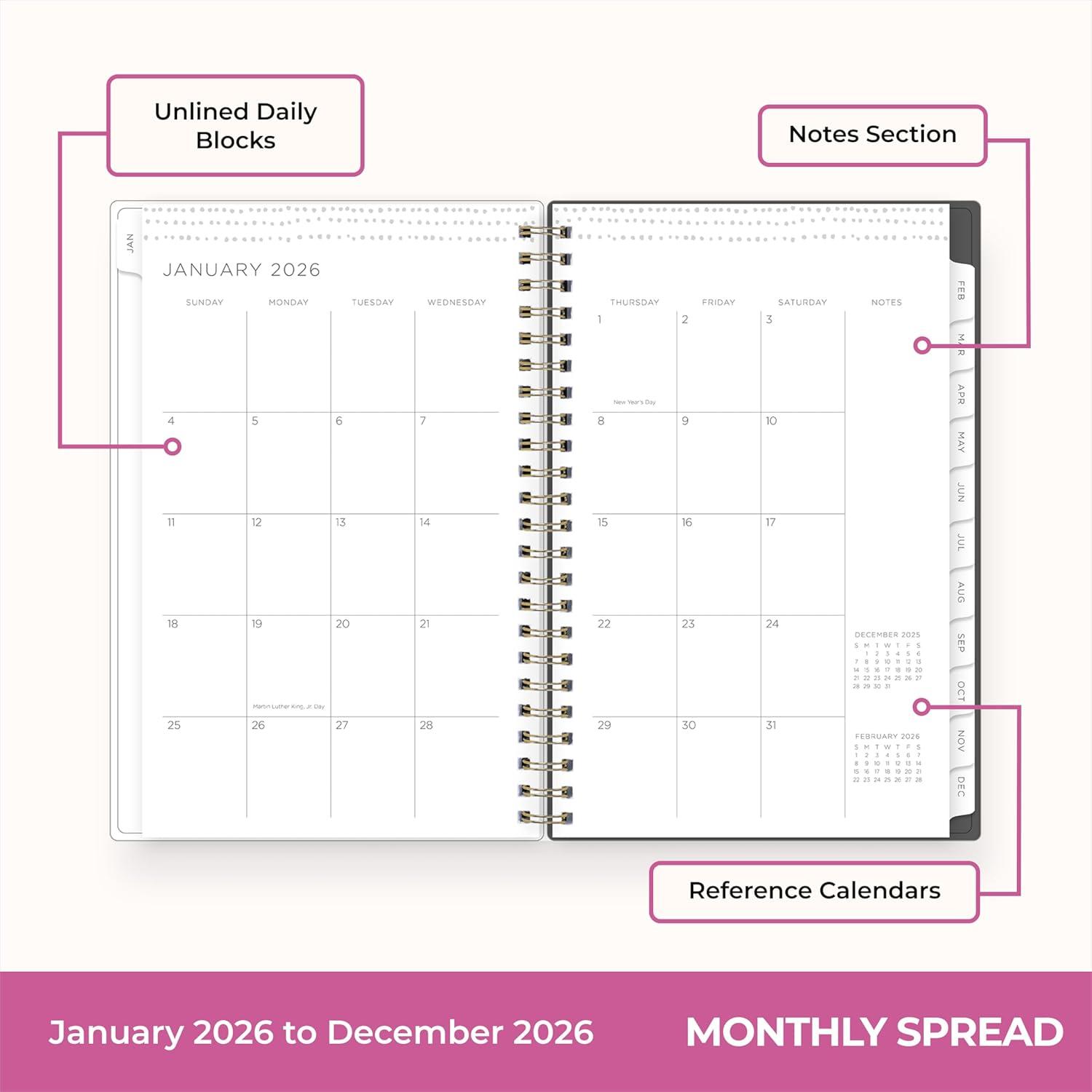 Blue Sky Gen Z 2026 Weekly and Monthly Planner Calendar, January 2026 – December 2026, 5″ x 8″, Flexible Interchangeable Cover, Durable Twin Wire Binding, Laminated Tabs, Storage Pocket, Monica(Monica- 2026)