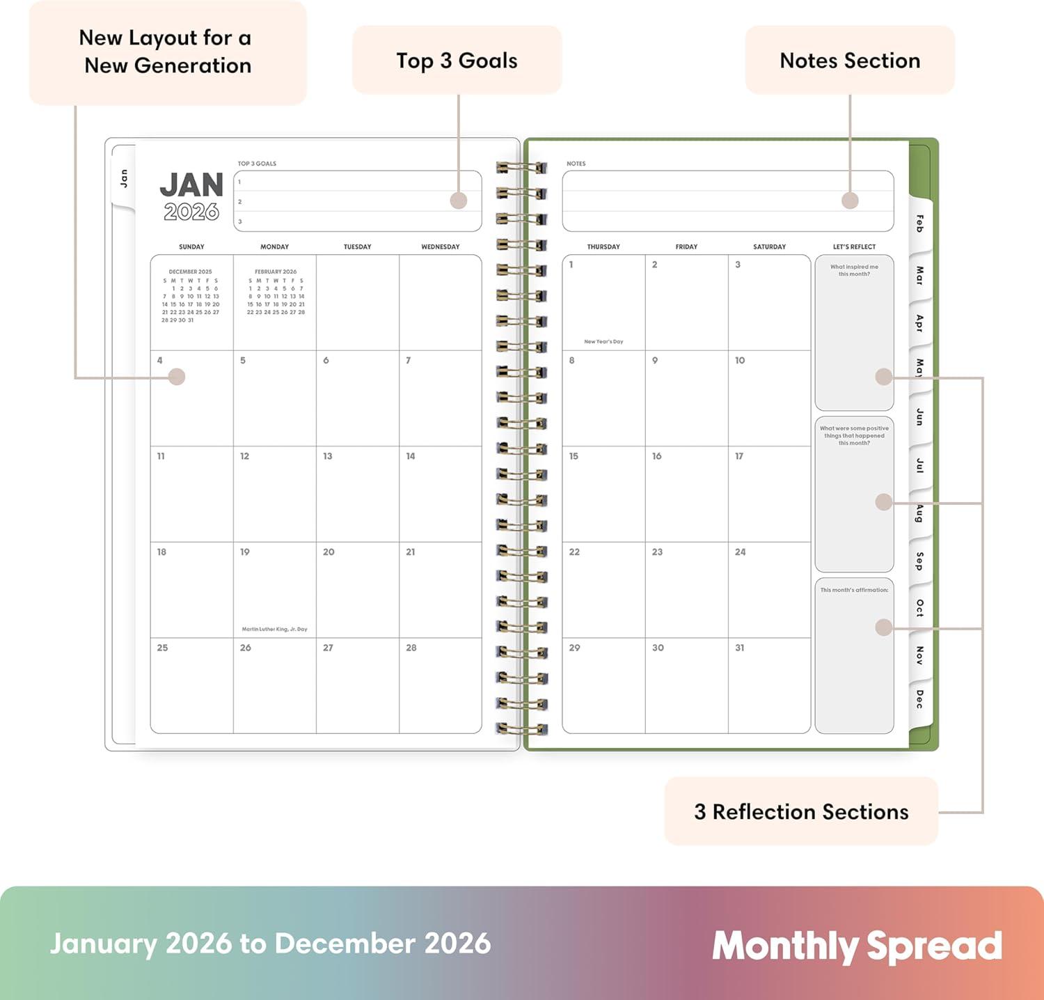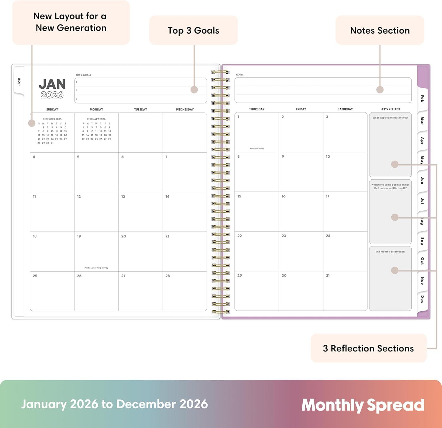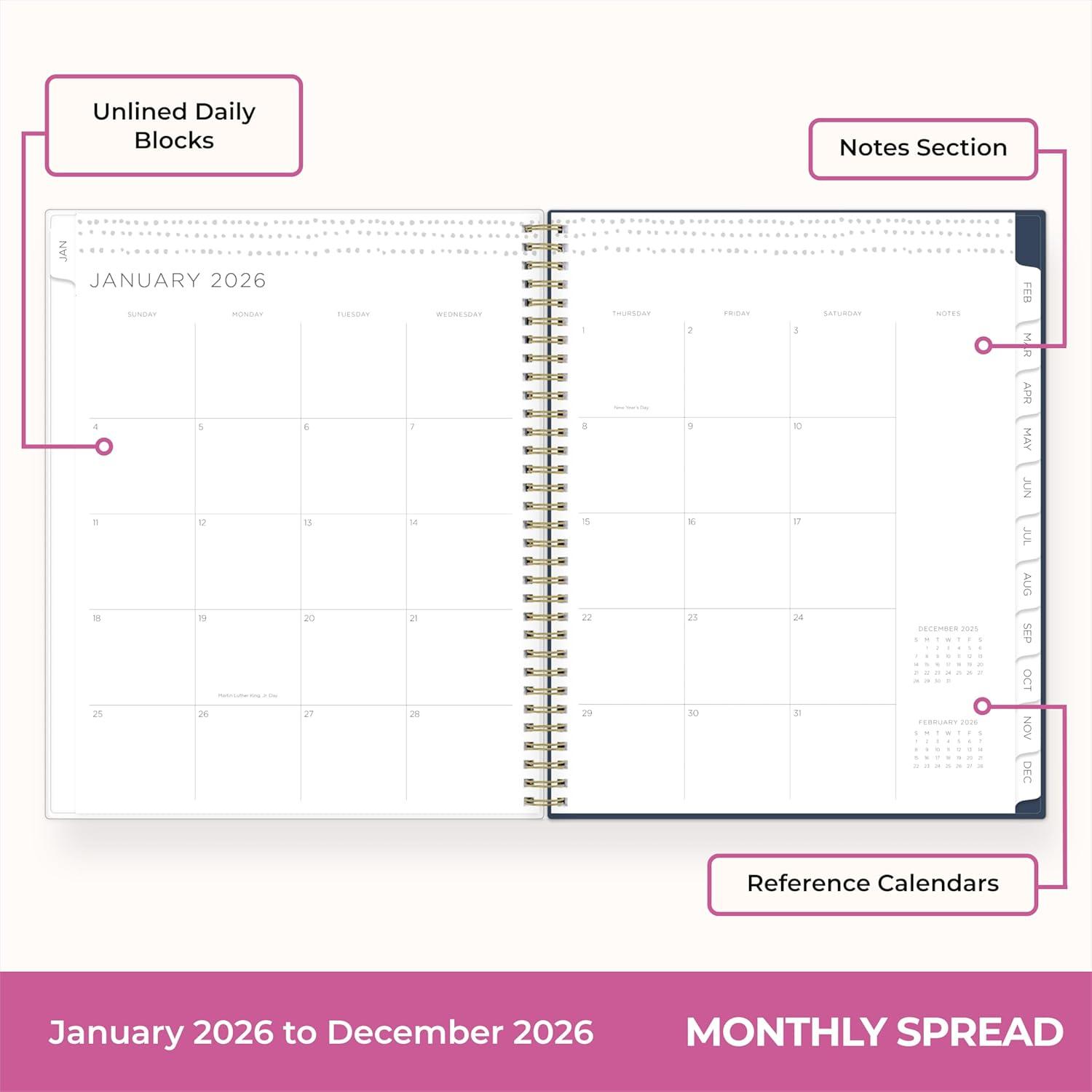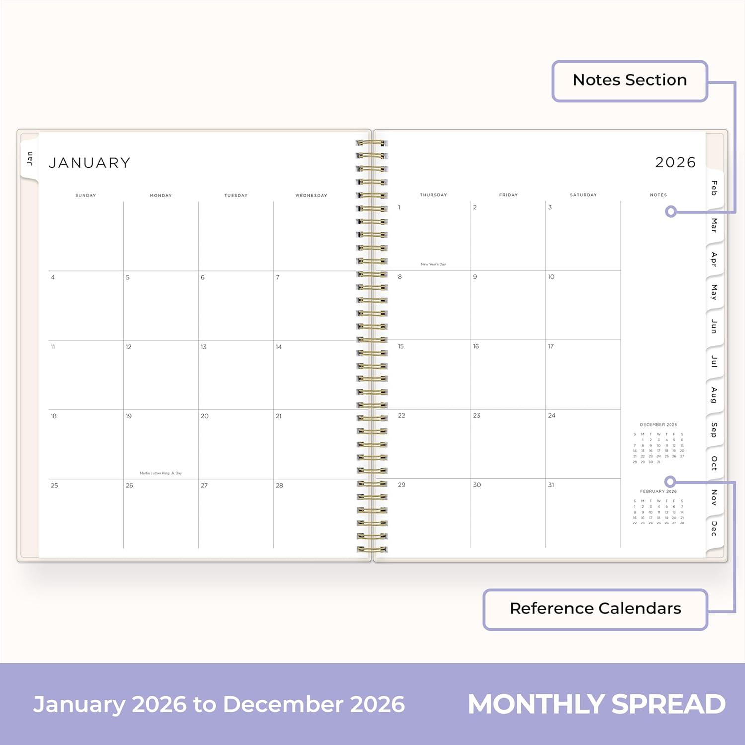Blue Sky Gen Z 2026 Weekly and Monthly Planner Calendar, January 2026 – December 2026, 5″ x 8″, Flexible Interchangeable Cover, Durable Twin Wire Binding, Laminated Tabs, Storage Pocket, Monica(Monica- 2026)