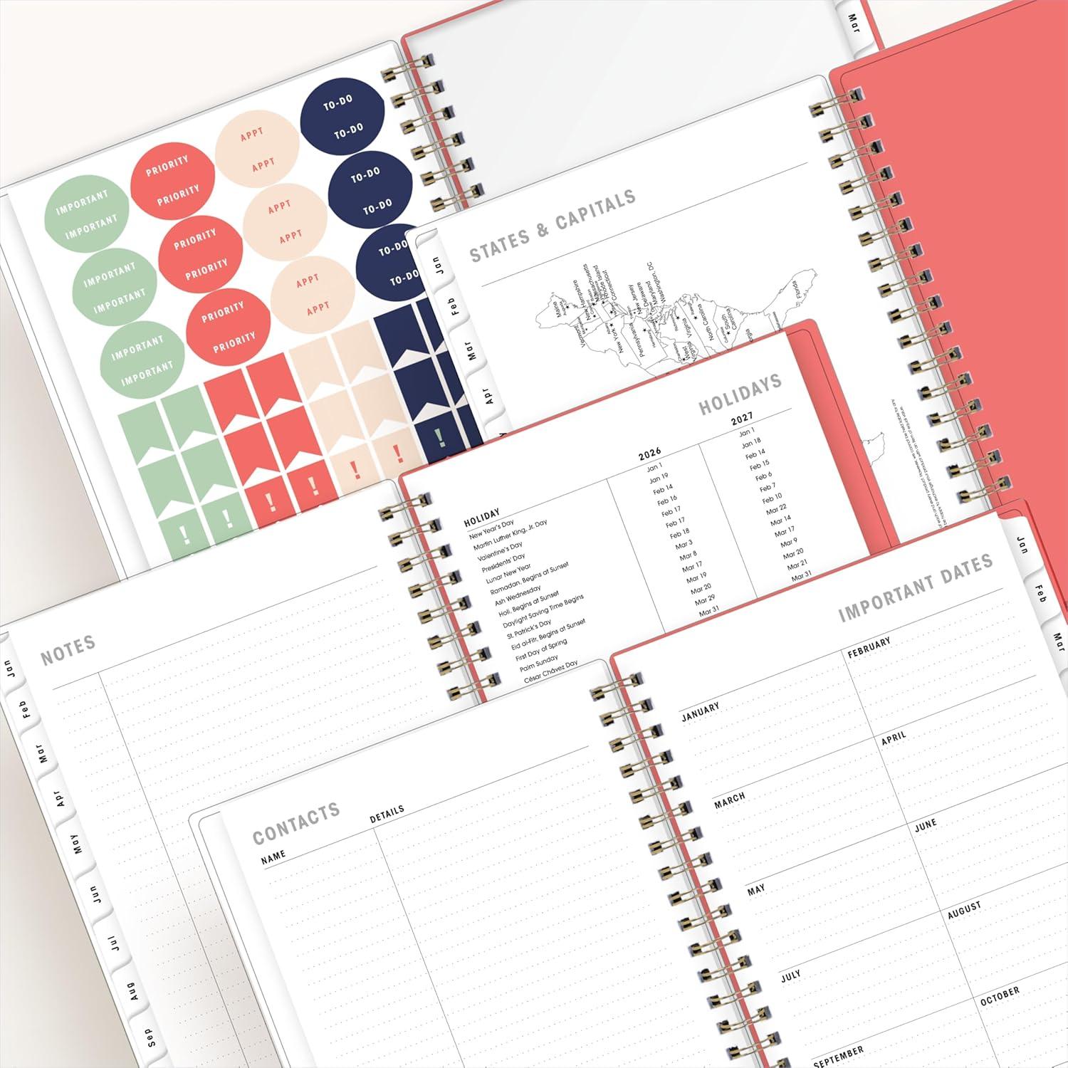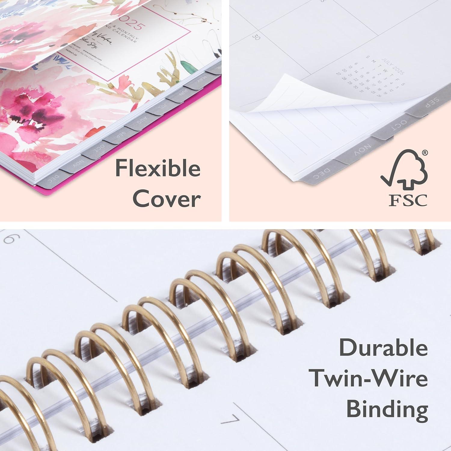 Blue Sky Artisans & Makers Sara Harding 2026 Weekly and Monthly Planner, January 2026 – December 2026, 5″ x 8″, Flexible Cover, Durable Wire Binding, Laminated Tabs, Pocket, Stickers, Bright Dahlias(Bright Dahlias- 2026)