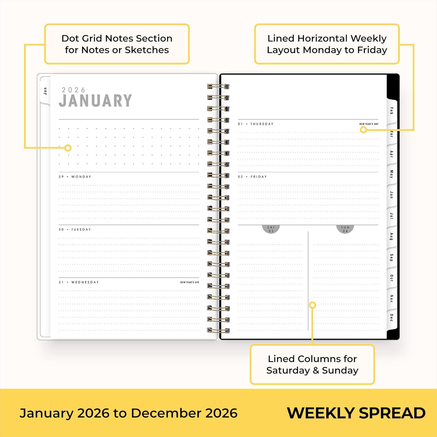 Blue Sky Ashley G 2026 Weekly and Monthly Planner Calendar, January 2026 – December 2026, 5.875″ x 8.625″, Flexible Cover, Durable Twin Wire Binding, Pocket & Extra Notes Pages, Sweetheart Black(Sweetheart Black- 2026)