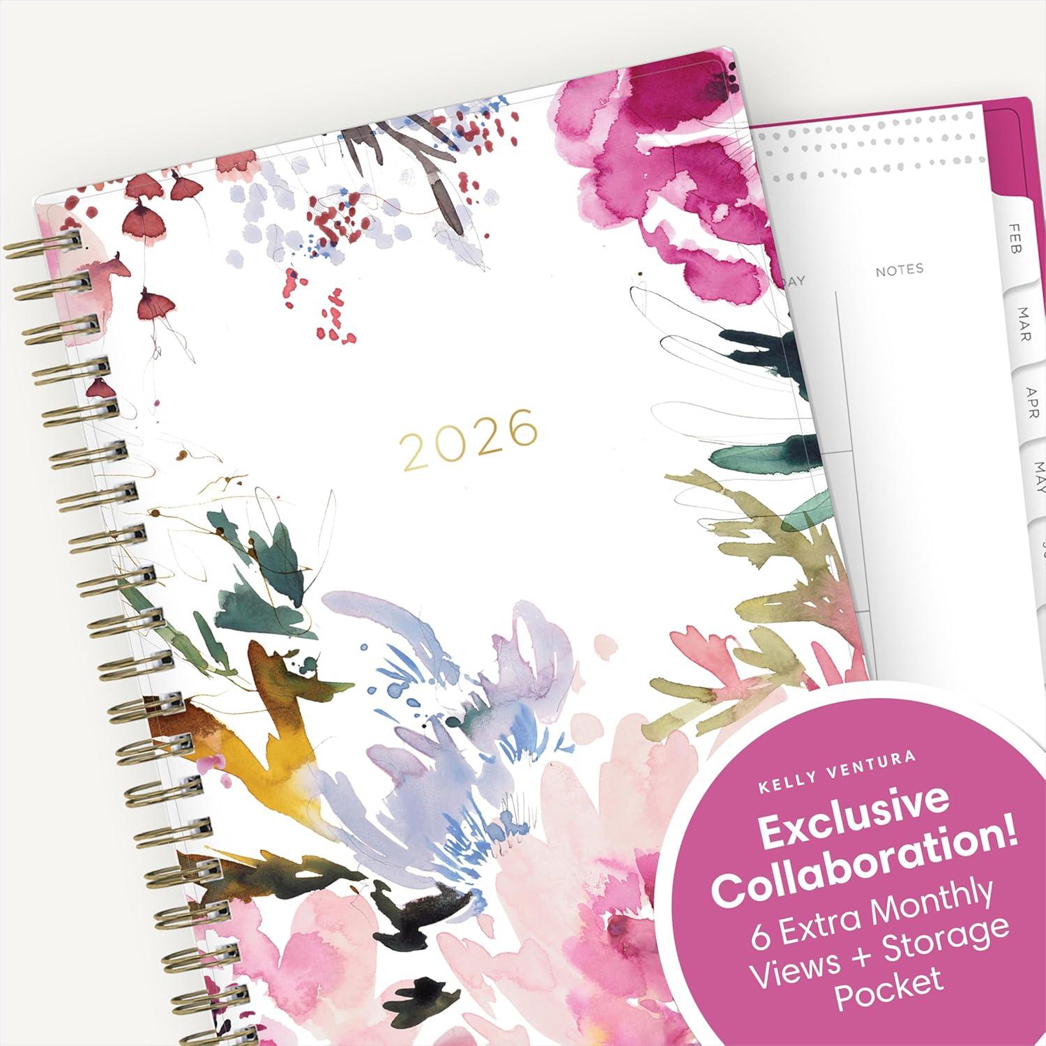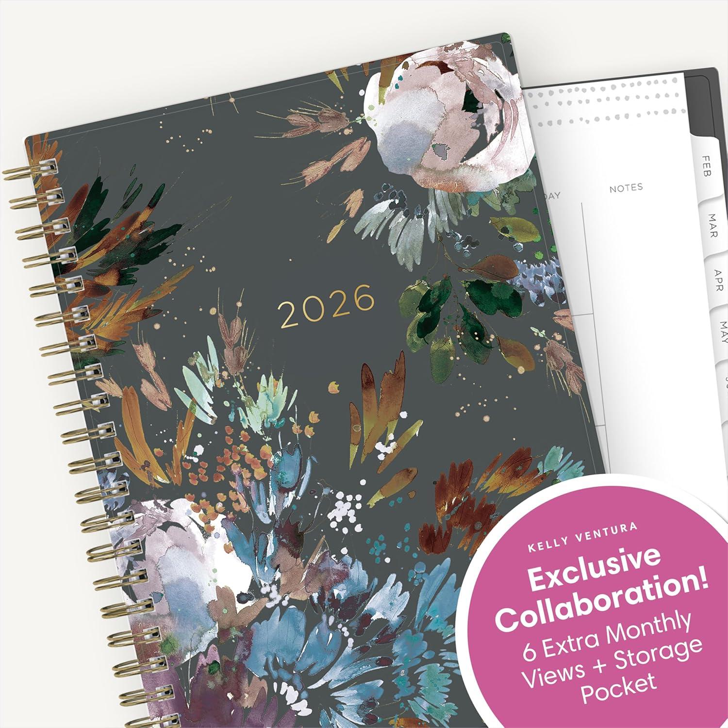 Blue Sky Kelly Ventura 2026 Weekly and Monthly Planner Calendar, January 2026 – December 2026, 8.5″ x 11″, Flexible Cover, Laminated Tabs, Durable Twin Wire Binding, Storage Pocket, Anemones(Anemones- 2026)