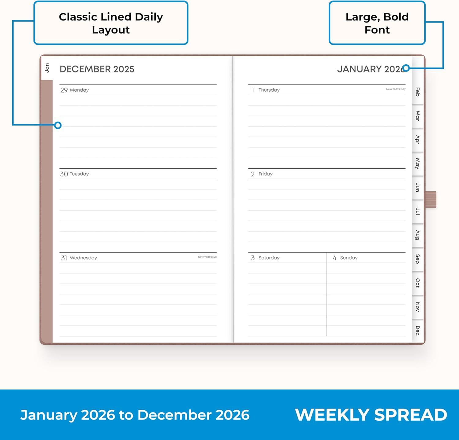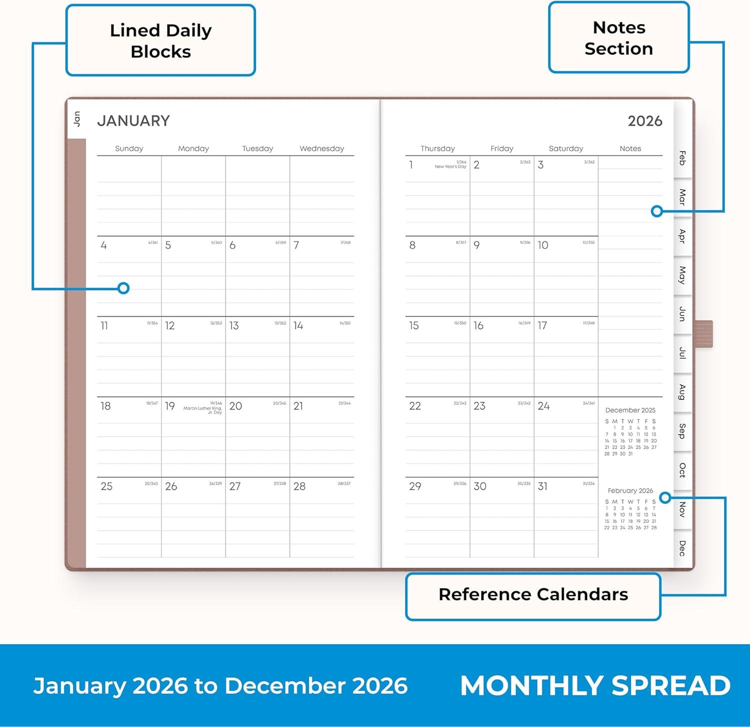 Blue Sky 2026 Weekly and Monthly Planner Calendar, January 2026 – December 2026, 5″ x 8″, Faux Leather Hard Cover, Bookbound, Tabs, Pen Loop, French Navy(Soft Brown- 2026)