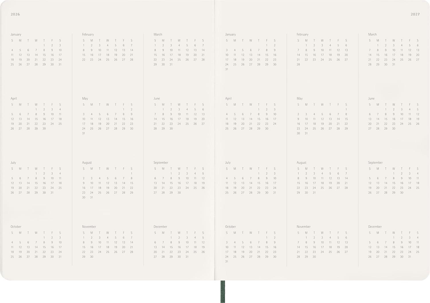 To personalize your planning, it comes with plenty of stickers and a practical set of sticky notes slotted into the back pocket. A ribbon bookmark discreetly marks your place, while the elastic closure keeps contents secure and ensures privacy. Like all Moleskine planners, it opens with a personal data page and annual overviews to help track the bigger picture, with plain pages at the end for extra notes and ideas.